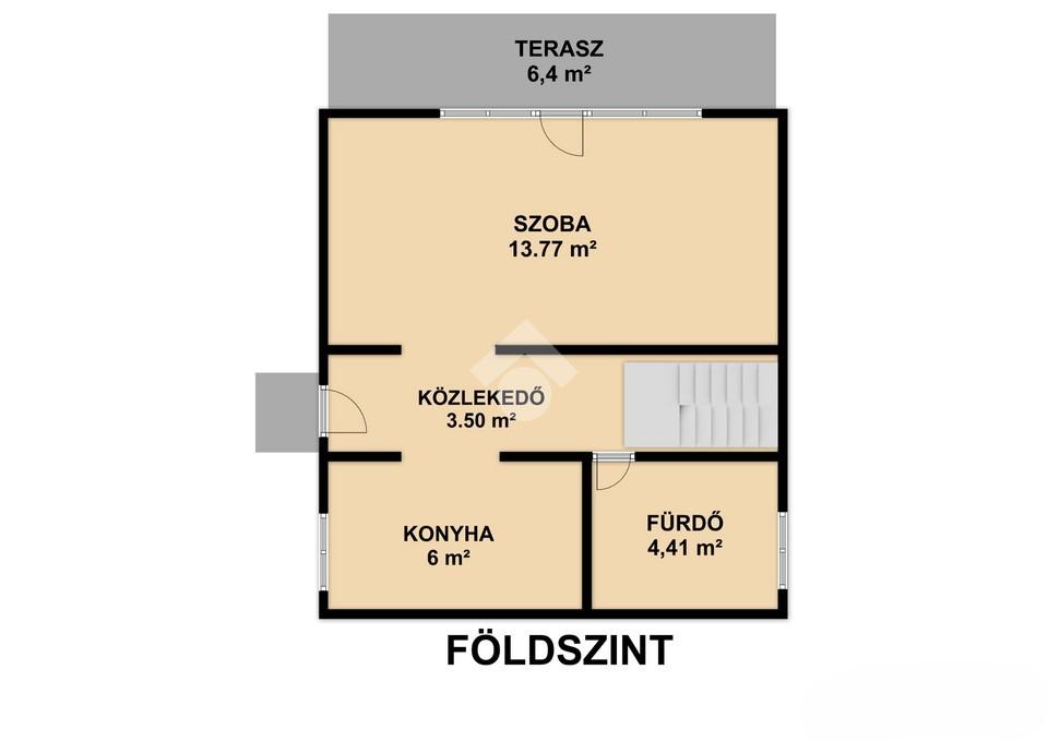 Földszint: nappali, konyha + étkező, zuhanyzós fürdőszoba + wc, terasz, szélfogó.